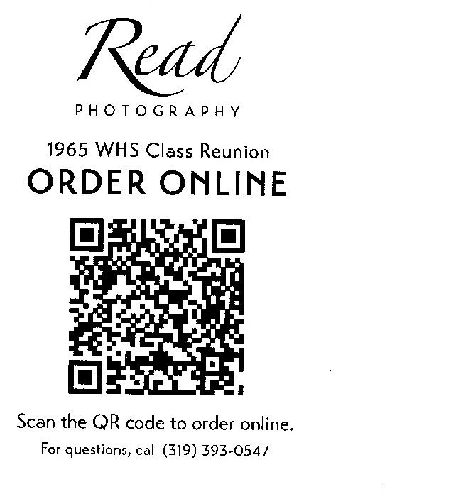 The Reunion Committee, on behalf of the Washington H.S. Class of I965, wishes to thank Jon Read for taking our commemorative group photo and the individual elementary group photos. To access these photos, open your smart phone in the photo mode, focus on the QR code to the left and tap the URL link when it appears.